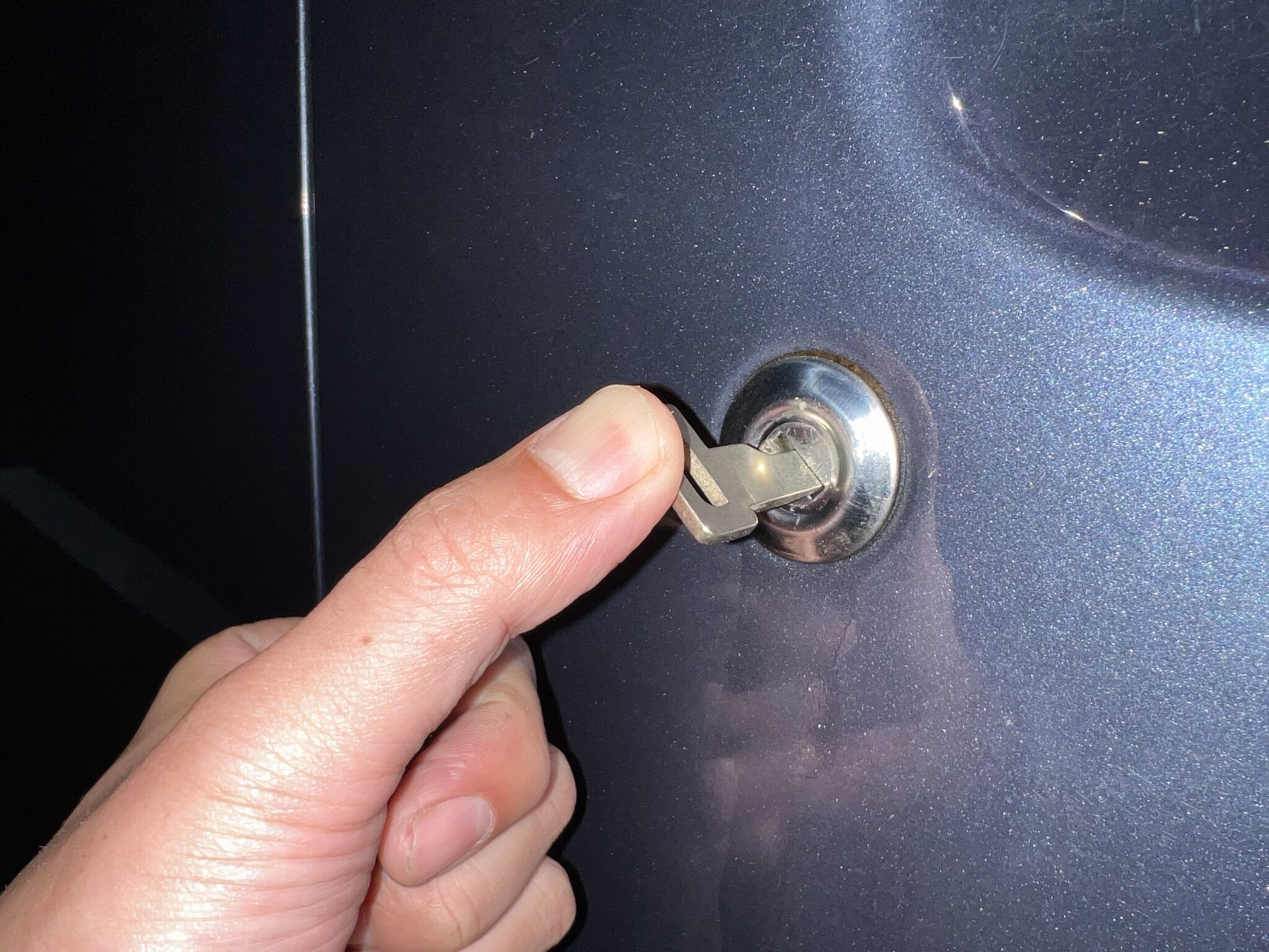 まずは、ドアのシリンダーをピッキングして覗き、鍵の形状を読み取ります。